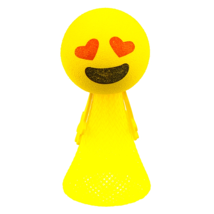 Игрушка работает по принципу пружины: сожмите её в кулачке и резко отпустите — она выпрыгнет на ничего не подозревающего соседа. Или поставьте на ровную поверхность и надавите на неё сверху. Ребятам наверняка захочется устроить соревнование, чья стрелялка подлетит выше!