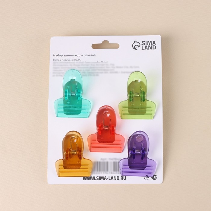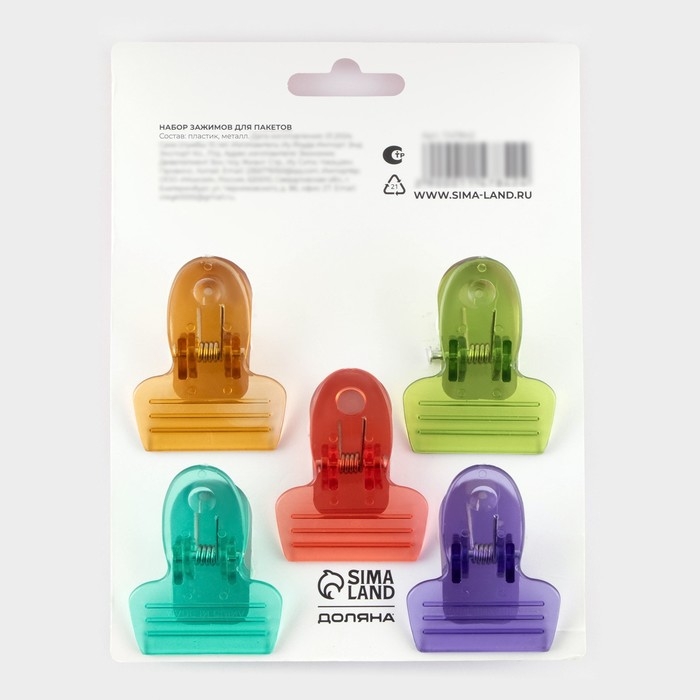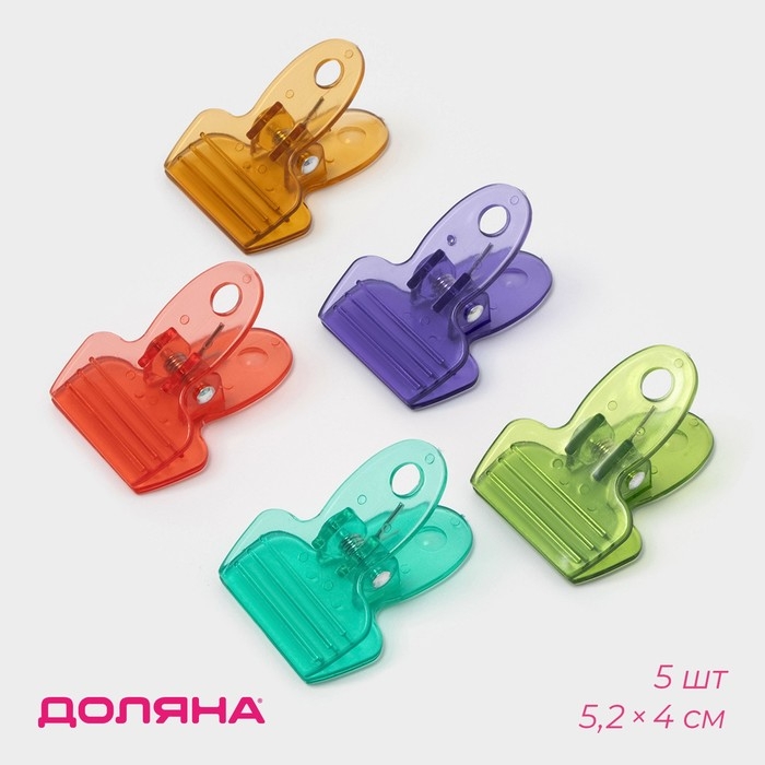 Набор зажимов для пакетов Доляна, 5,2×4 см, 5 шт, цвет МИКС