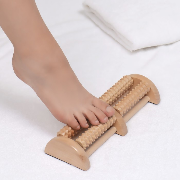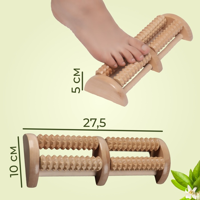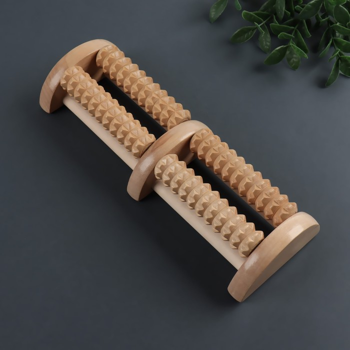 Массажёр «Барабаны», 4 ролика с шипами, деревянный, 26 × 10 × 5 см