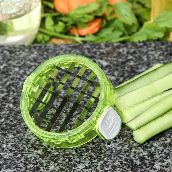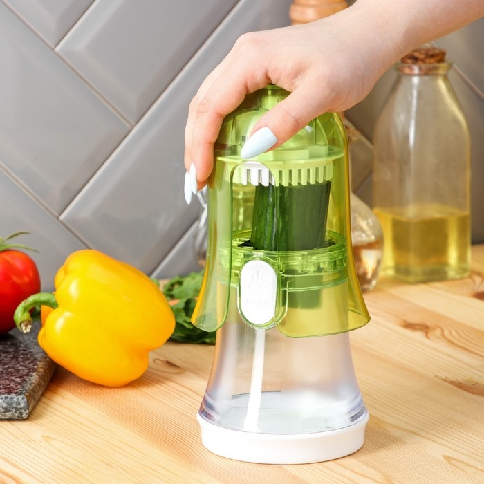 Овощерезка Доляна, 2 сменные насадки, съёмный пушер, 10,6×10,6×16,6 см, цвет зелёный, белый