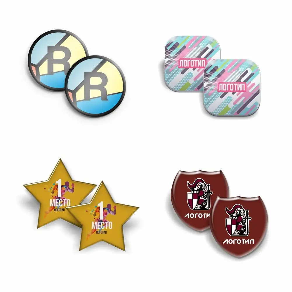 Значки с логотипом подойдут как сувениры для промоакций, так и в качестве корпоративных знаков отличия.