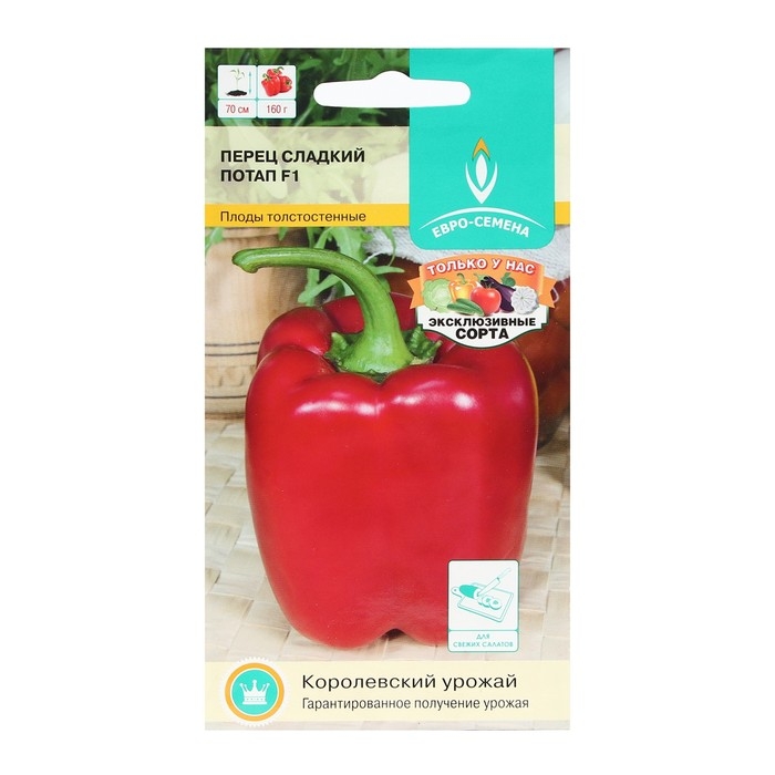 «Потап» имеет красные кубовидные плоды массой 150–170 г и толщиной стенок 7–8 мм. Гибрид устойчив к болезням и высокой урожайностью. Прекрасно подходит для употребления в свежем виде, консервирования и приготовления лечо.