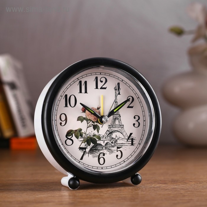 Часы - будильник настольные "Эйфелева башня", дискретный ход, d-8.5 см, 10 х 11 см, АА