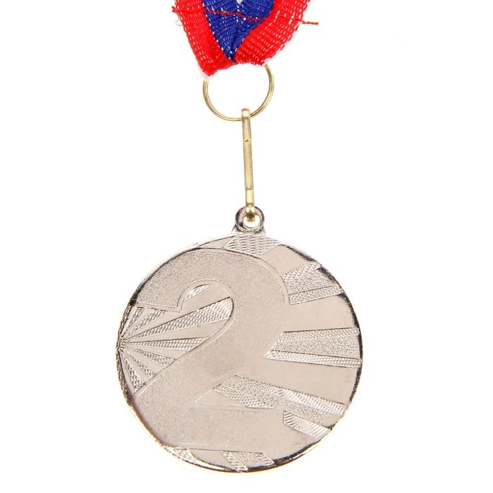 Медаль призовая 071, 2 место. Цвет серебро. С лентой. 4,3 х 4,6 см