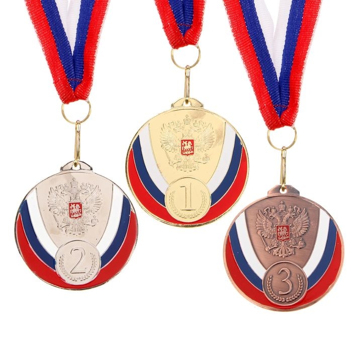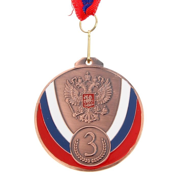 Медаль призовая 050, d= 7 см. 3 место, триколор. Цвет бронза. С лентой