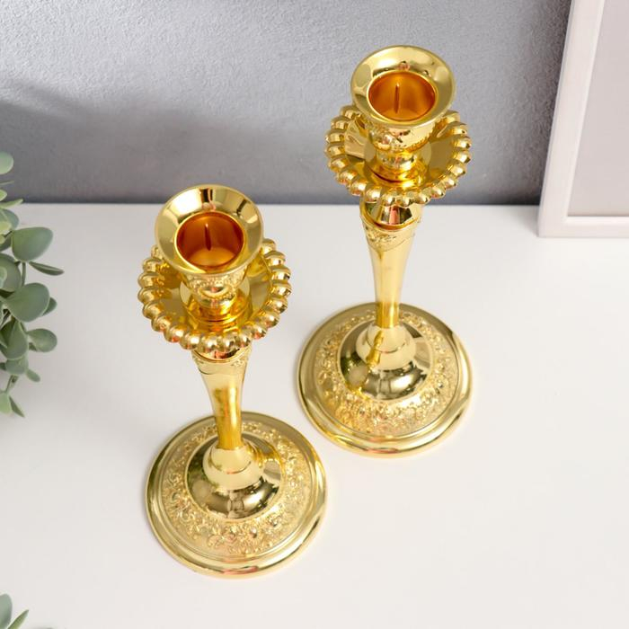 Подсвечник металл "Касиопея" набор 2 шт цвет золото 26х9,5х9,5 см
