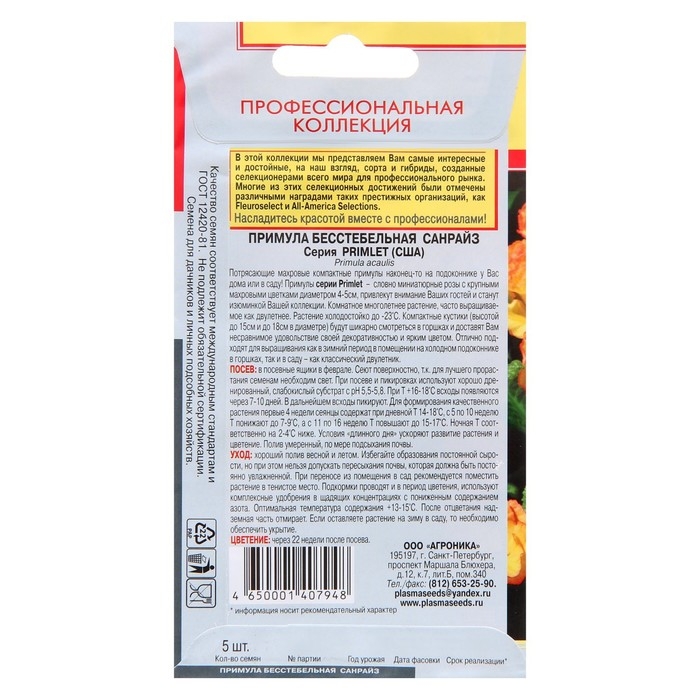 Семена Примула бесстебельная "Санрайз", 5 шт