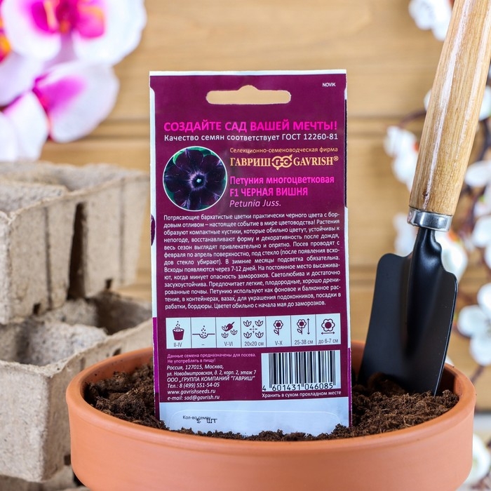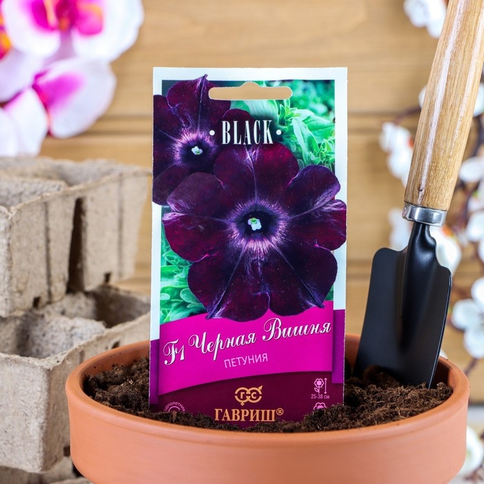 Потрясающие бархатистые цветки практически черного цвета с бордовым отливом — настоящее событие в мире цветоводства! Растения образуют компактные кустики, которые обильно цветут, устойчивы к непогоде, восстанавливают форму и декоративность после дождя, весь сезон выглядят привлекательно и опрятно. Посев проводят с февраля по апрель, поверхностно, под стекло (после появления всходов стекло убирают). В зимние месяцы подстветка обязательна. Всходы появляются через 7-12 дней. На постоянное место высаживают, когда минует опасность заморозков. Светолюбива и достаточно засухоустойчива. Предпочитает легкие, плодородные, хорошо дренированные почвы. Петуния используется как фоновое и балконное растение, в контейнерах, вазах, для украшения подоконников, для посадки в рабатки, бордюры. Цветет обильно с начала мая до заморозков.