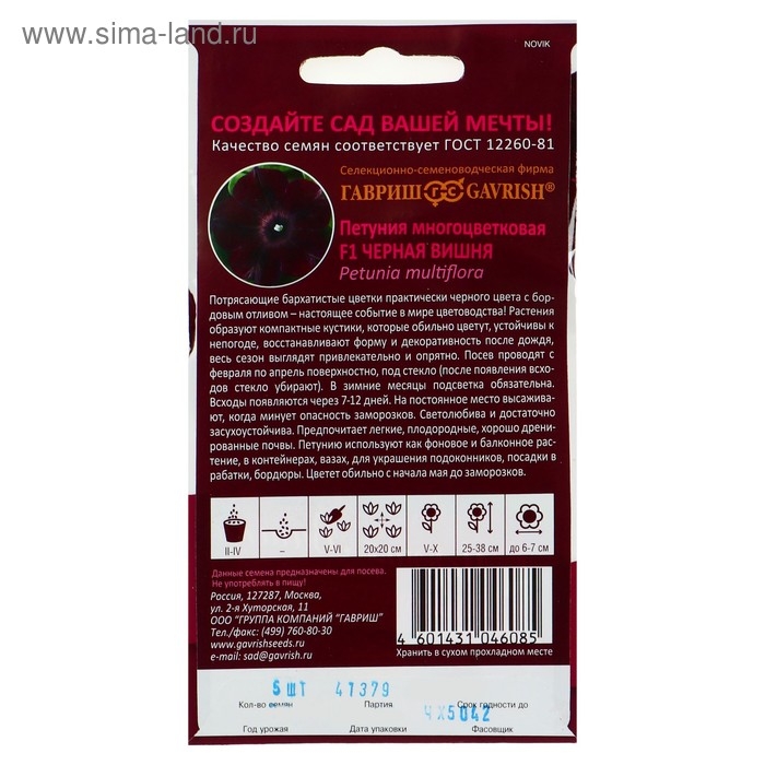 Семена цветов Петуния "Черная вишня" F1 многоцветковая, О, гранулы, пробирка 4 шт.