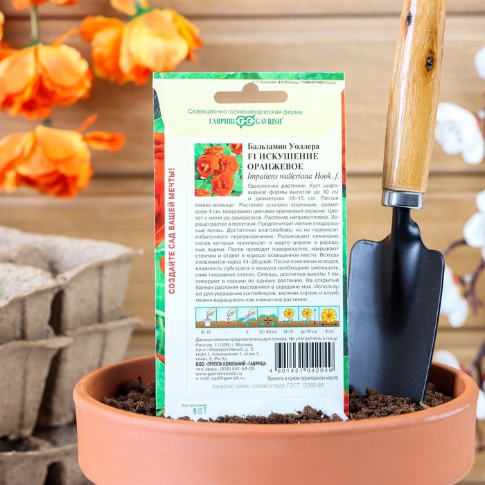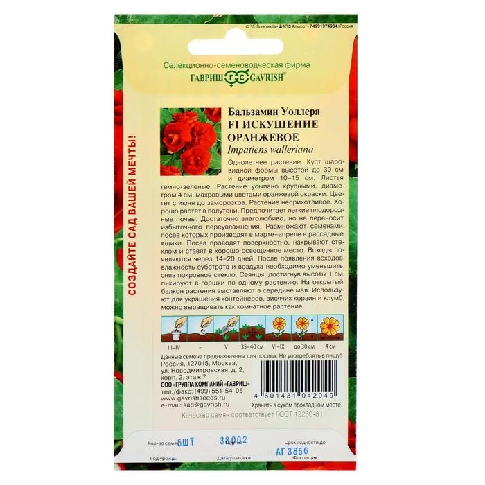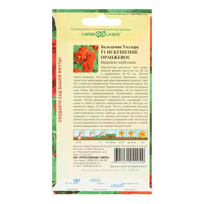Семена цветов Бальзамин "Уоллера Искушение оранжевое" F1, О, 4 шт.