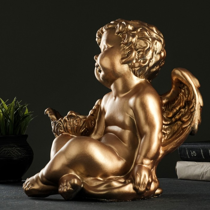 Подсвечник "Ангел сидя в руке" 26х21х30 см бронза, для свечи d=6 см