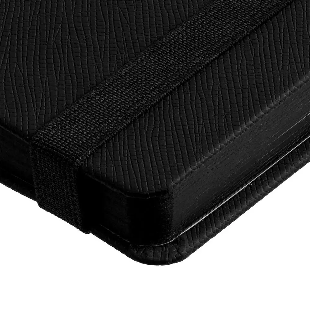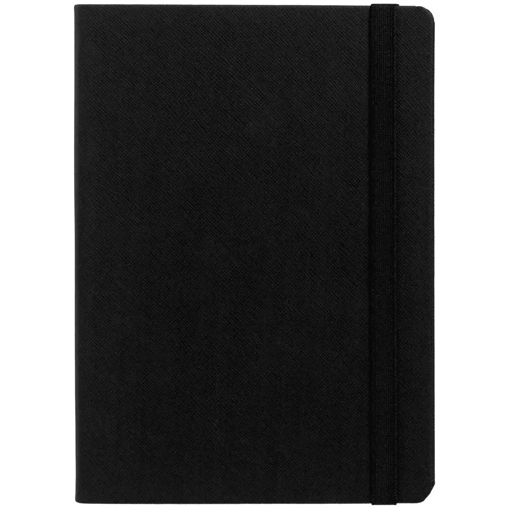 Ежедневник с твердой обложкой выполнен из материала Nice Touch, черный АА, и дополнен резинкой шириной 1 см и ляссе черного цвета.