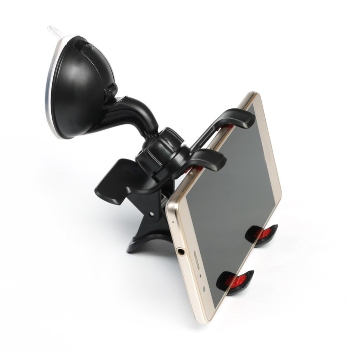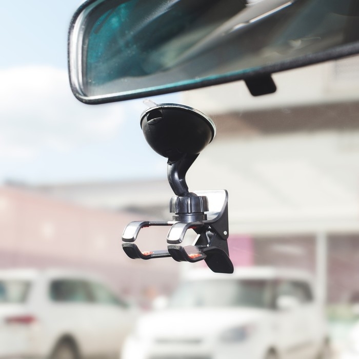 Универсальный держатель позволяет надёжно зафиксировать телефон или навигатор благодаря удобному зажиму-прищепке. Устанавливается с помощью вакуумной присоски на любой ровной поверхности (стекле или панели автомобиля).