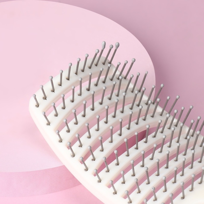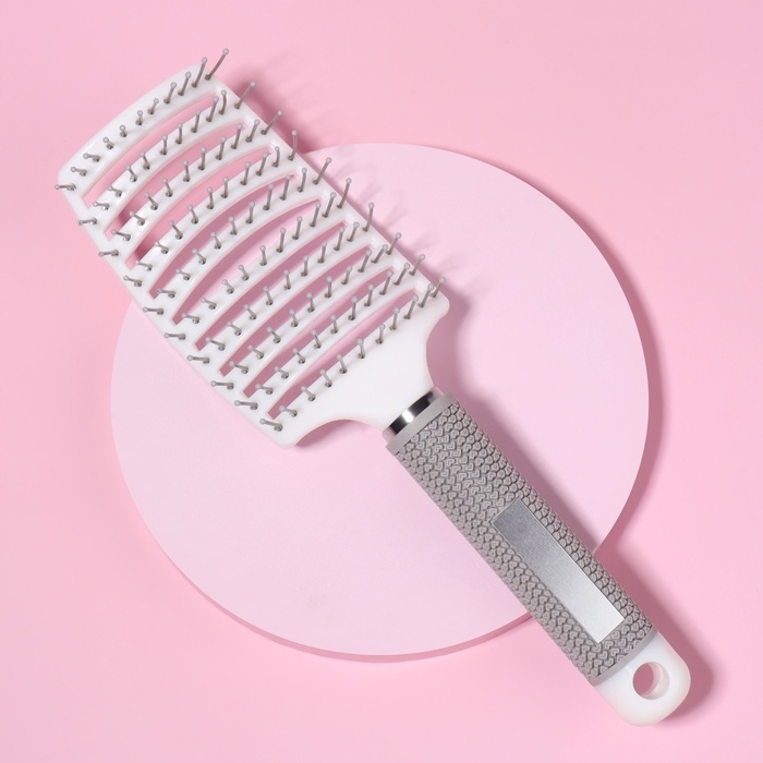 Расчёска массажная, с магнитом, прорезиненная ручка, вентилируемая, 7,5 × 25,5 см, цвет бежевый/белый