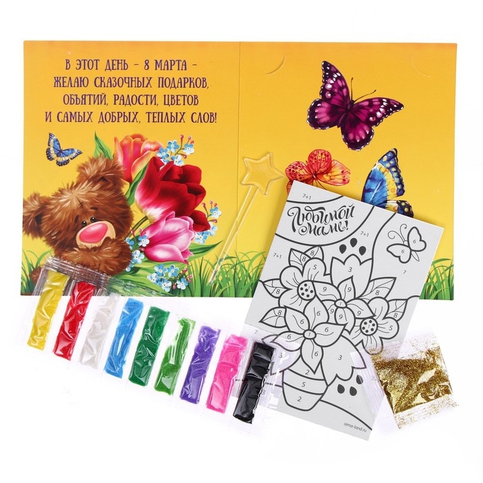 Фреска - открытка песком «Любимой маме» + блёстки