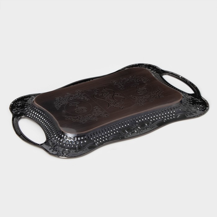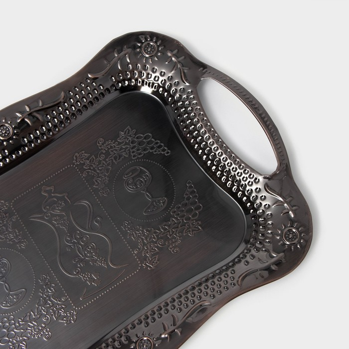 Поднос из нержавеющей стали с ручками «Изобилие», 38×25×2,5 см, цвет бронзовый