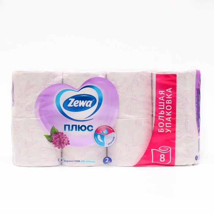 Туалетная бумага Zewa "Плюс", 2 слоя, 8 рулонов, "Сирень"