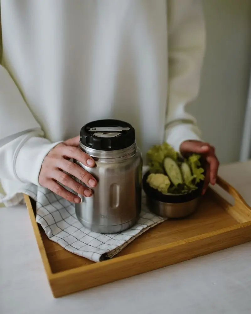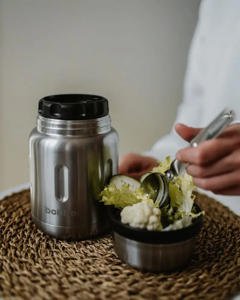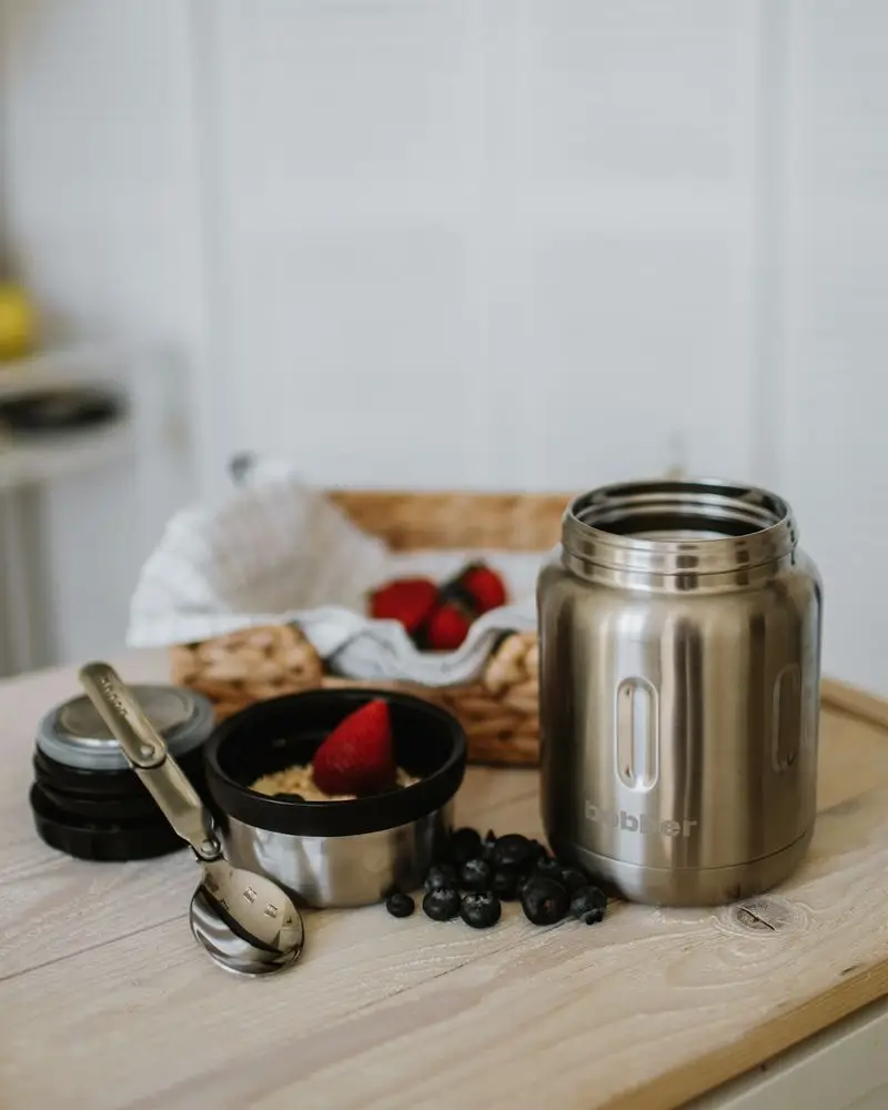 - Благодаря металлической вставке на пробке еда не контактирует с пластиком