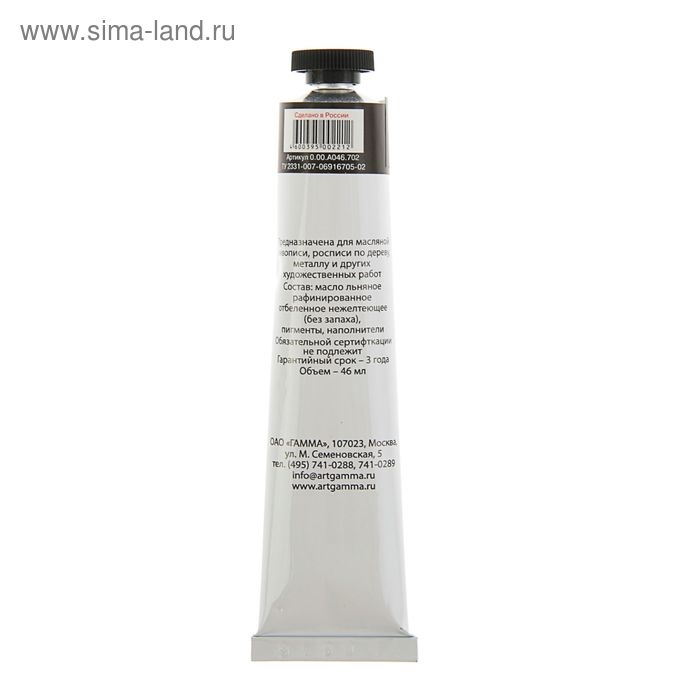Краска масляная в тубе 46 мл, Гамма "Студия", №702 карельская чёрная