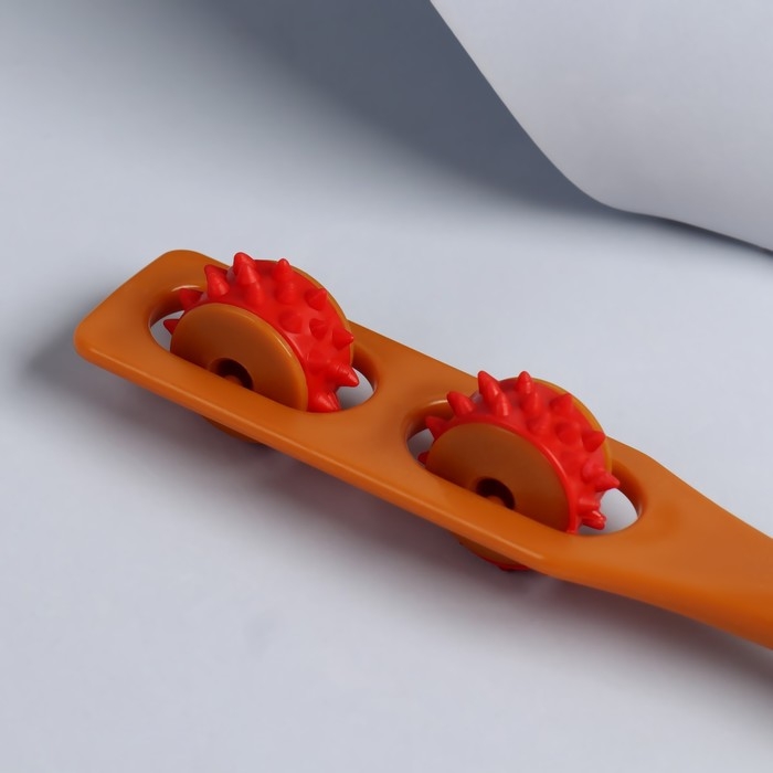 Двусторонний инструмент сделает массаж спины лёгким и приятным. Чесалка бережно снимет напряжение и расслабит кожу. Колёсики с шипами разомнут мышцы и помогут ликвидировать застои в них.