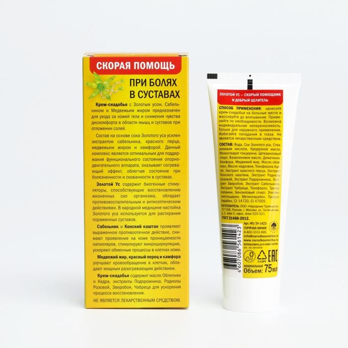 Крем-снадобье "Новые тайны Золотого уса", при боли в суставах и отложении солей, 75 мл