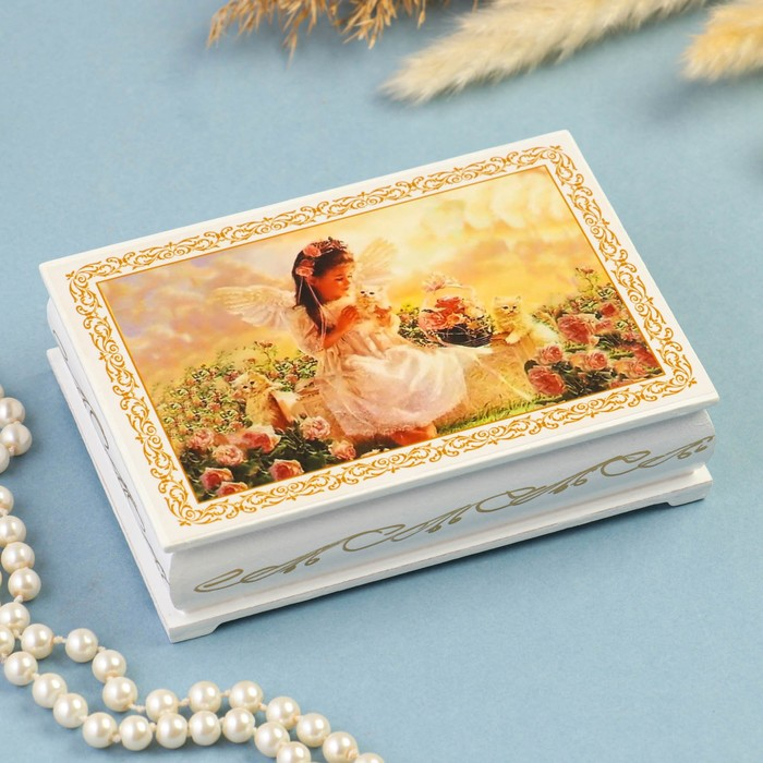 Шкатулка «Ангелочек с котятами», белая, 10×14 см, лаковая миниатюра