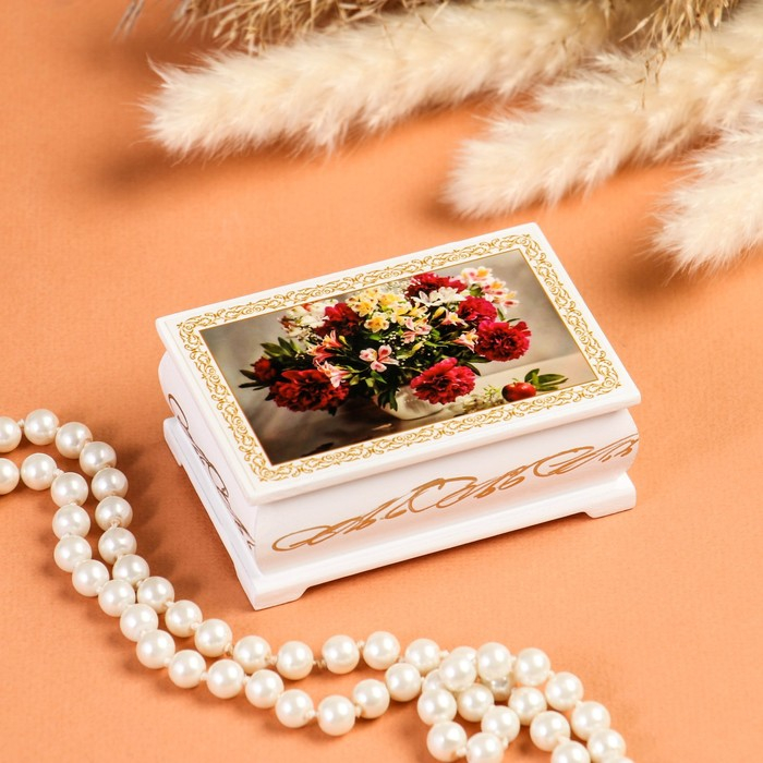 Шкатулка «Букет цветов в вазе», белая, 6×9 см, лаковая миниатюра