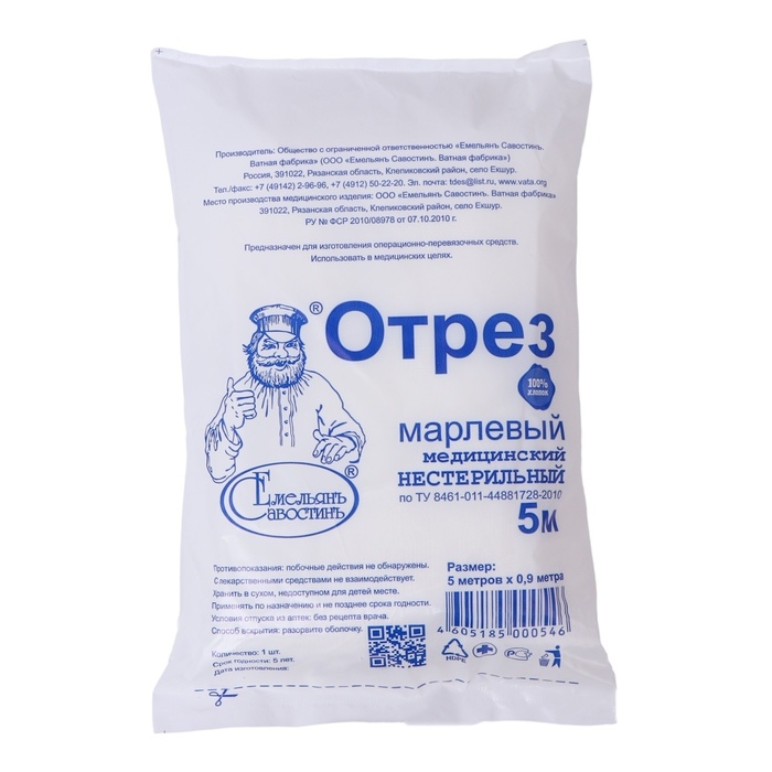 Марля медицинская "Емельянъ Савостинъ", плотность 32 г/кв.м, 0.9х5 м