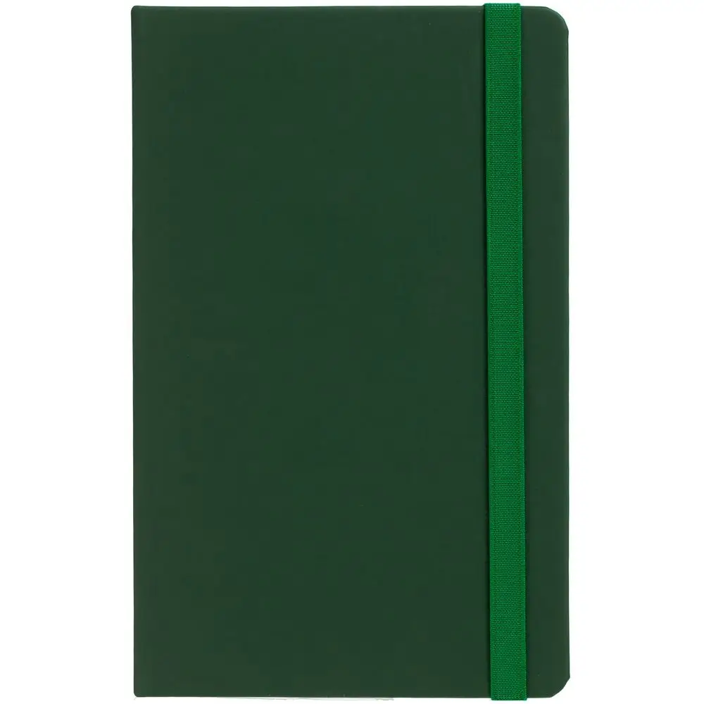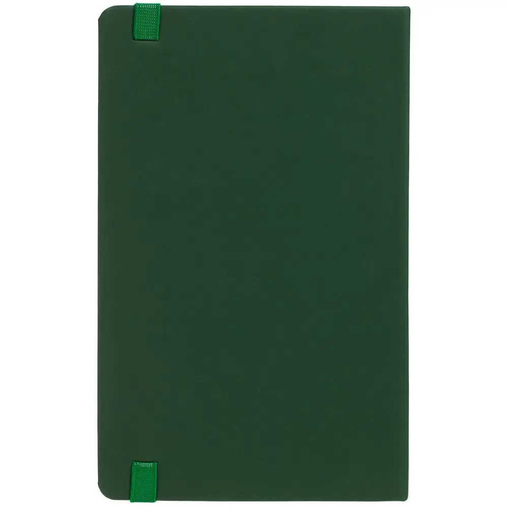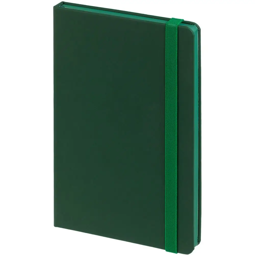 Блокнот в твердой обложке, выполнен из материала Soft Touch, зеленый FF, дополнен резинкой и ляссе в цвет обложки.