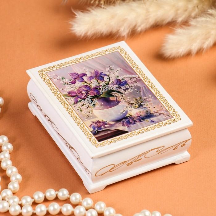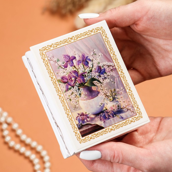 Шкатулка «Цветы в вазе», белая, 8×10,5 см, лаковая миниатюра