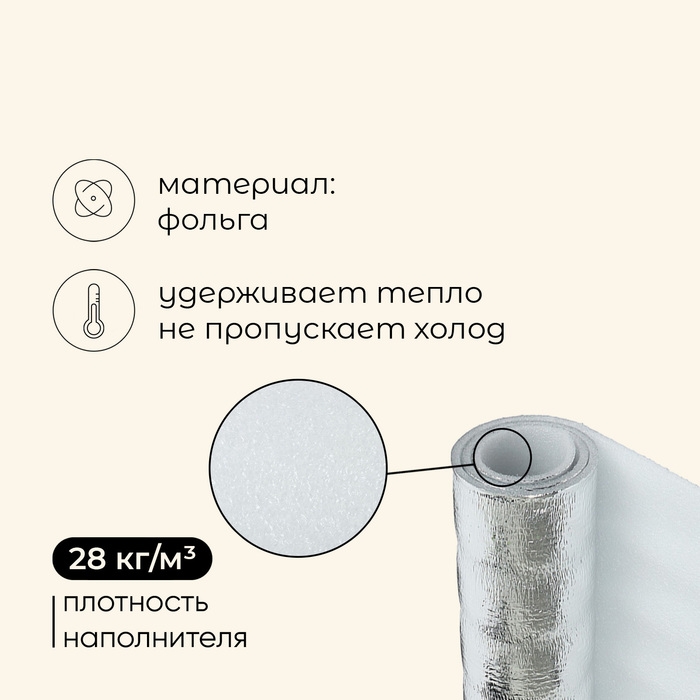 Коврик туристический maclay, с фольгой, 140х50х0.8 см, цвет белый