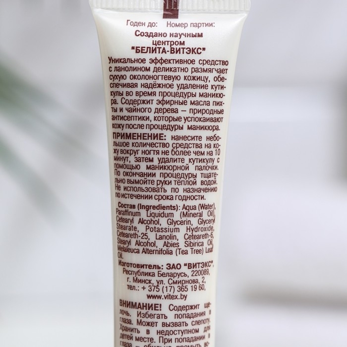 Способ применения: нанести небольшое количество средства на кожу вокруг ногтя не более чем на 10 минут. Затем удалите кутикулу при помощи деревянной палочки. По окончании процедуры тщательно вымойте руки теплой водой.