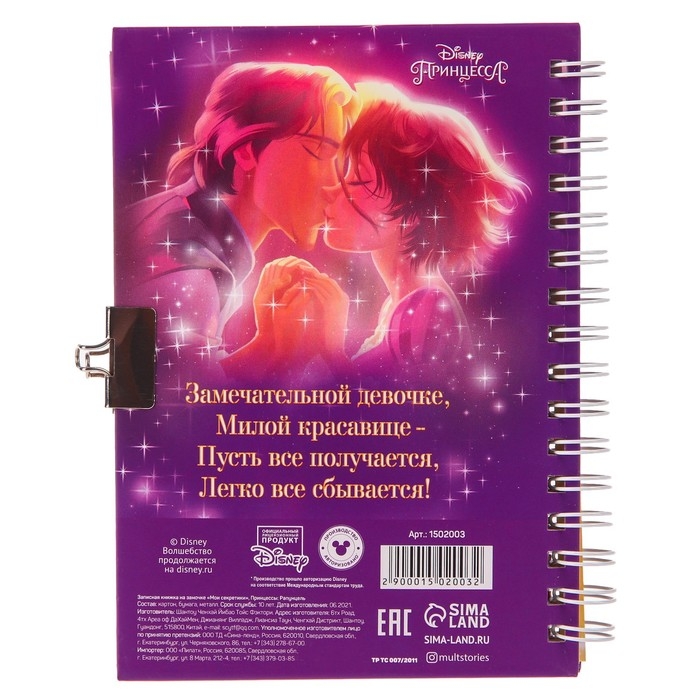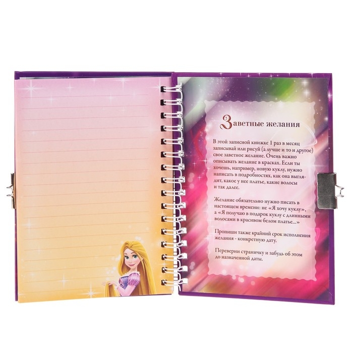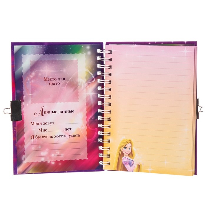 Записная книжка на замочке А6, "Мои секретики", 50 листов, Принцессы: Рапунцель