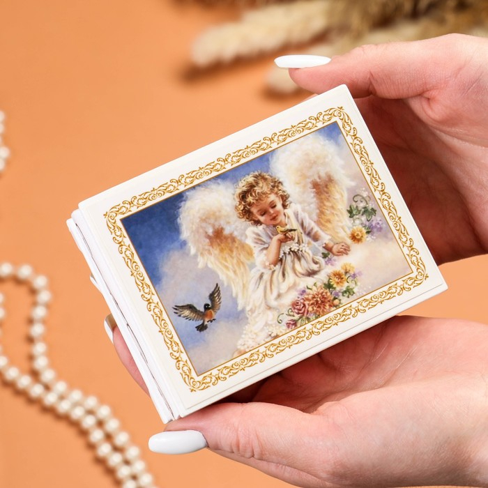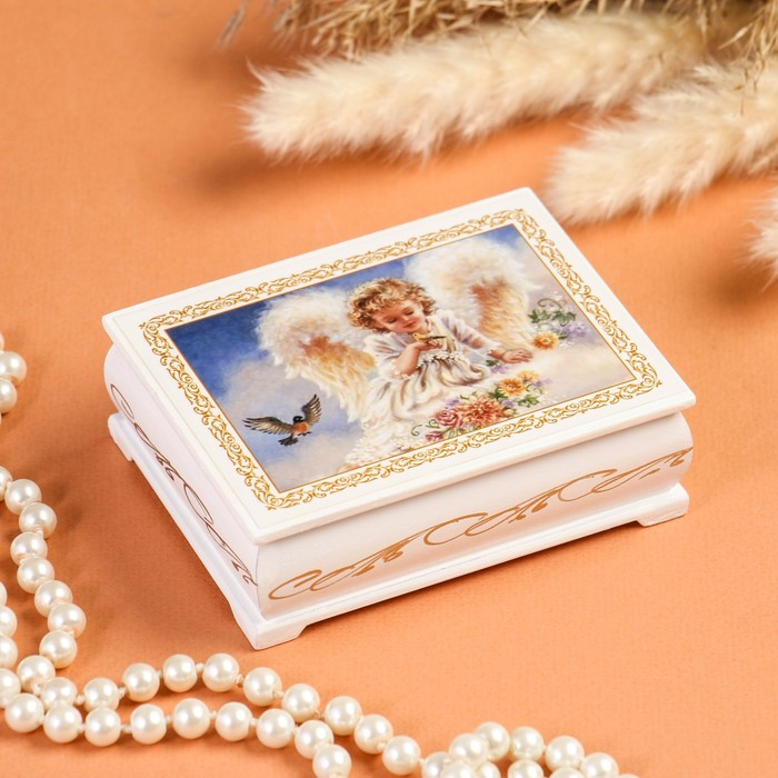 Шкатулка «Ангелок с птичками», белая, 8×10,5 см, лаковая миниатюра