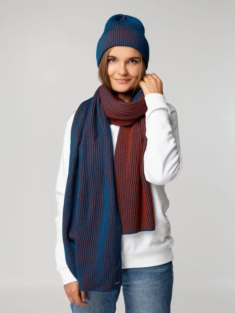 Двухсторонний шарф из полушерстяной пряжи позволяет играть со стилем верхней одежды, не меняя при этом аксессуара, — просто выбирайте цвет настроения или комбинируйте два в одном!