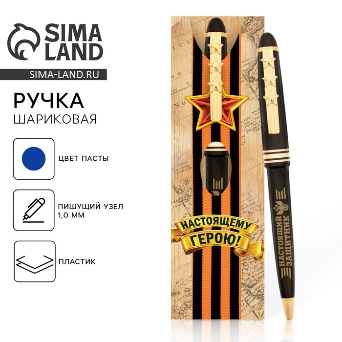 Ручка шариковая синяя паста 1.0 мм «Настоящий защитник» пластик, подарочная