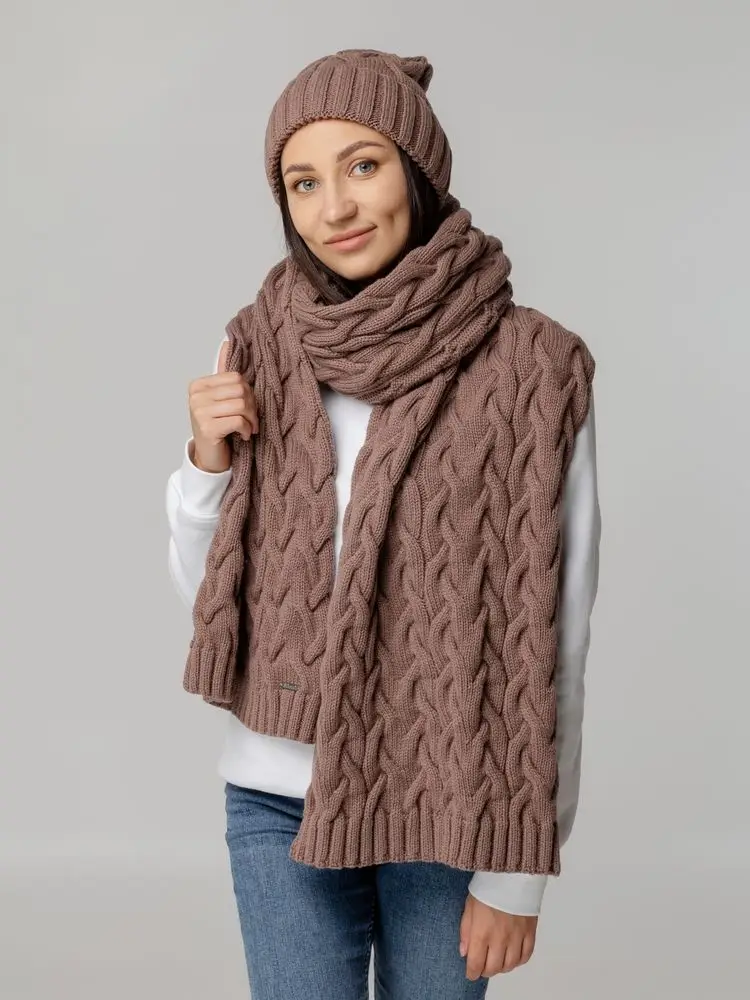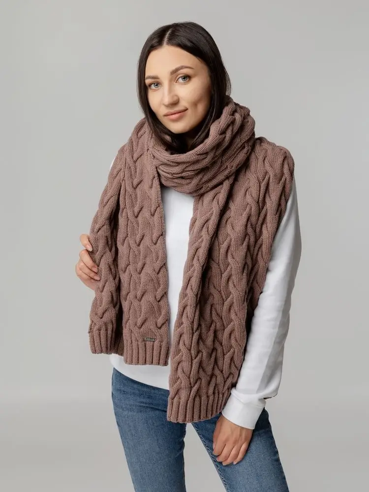 Длинный фактурный шарф — классика, которая не устаревает. Такая модель добавит уюта и шарма в зимний образ, станет его притягательным акцентом.