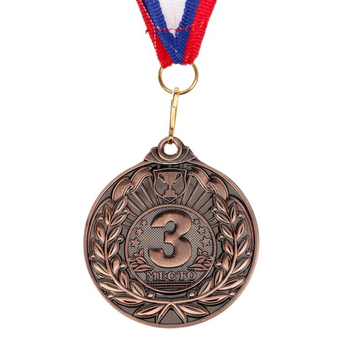 Медаль призовая 050, d= 7 см. 3 место, триколор. Цвет бронза. С лентой