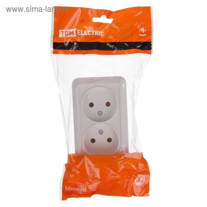 Розетка TDM "Ладога", 10 А, IP20, двухместная, без з/к, открытая, белая