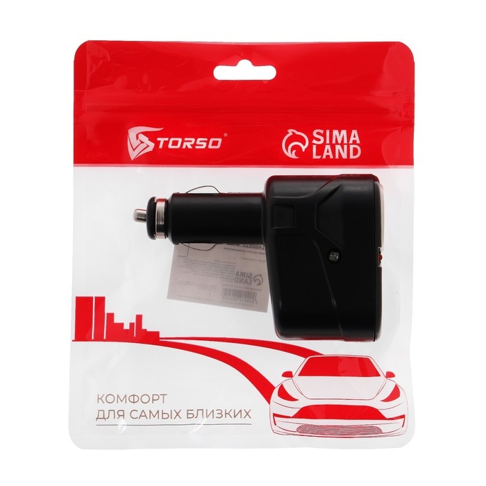 Разветвитель прикуривателя TORSO, с вольтметром, USB 3.1 А, провод 70 см