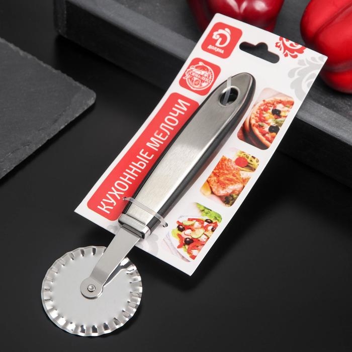 Нож для пиццы — универсальный кухонный инструмент, который не только легко разрезает готовую выпечку, но и помогает поделить на слайсы липкое тесто. Нож имеет эргономичную форму ручки и острое круглое лезвие. Колесо, прикреплённое к рукояти, продавливает продукт, а не разрезает его в отличие от классического ножа. Благодаря такому способу тесто разрезается, а начинка остается на месте.