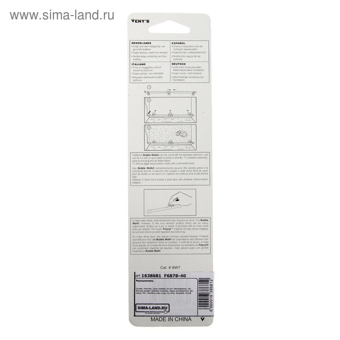 Распылитель имеет присоски, которые позволяют легко закрепить его на стенке аквариума.