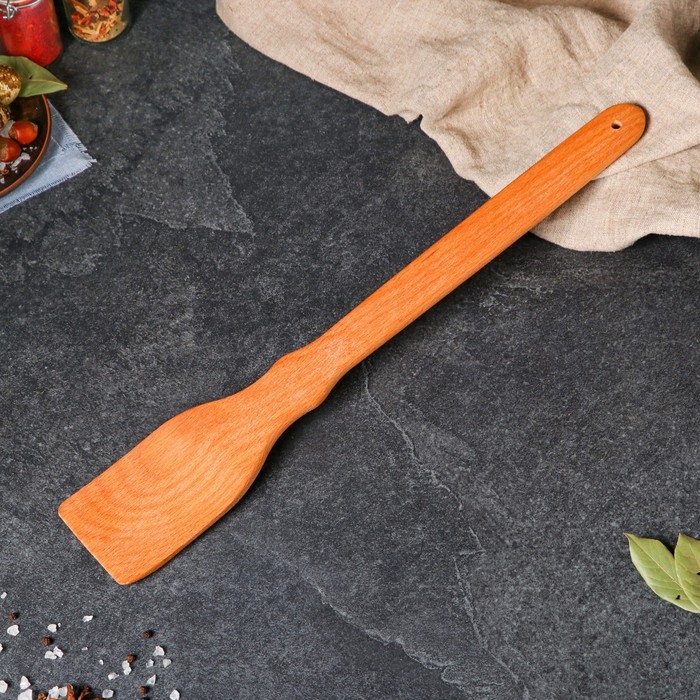 Деревянная лопатка подходит для любой посуды, в том числе и для изделий с антипригарным покрытием. Она не влияет на вкус блюда и не оставляет неприятных запахов, а экологически чистый материал не несёт вреда вашему здоровью. Изделие выдерживает высокую температуру, а при правильном уходе прослужит очень долго.