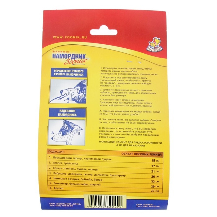 Намордник матерчатый Зооник №3. Материал: Нейлон. Обхват морды см: 26. Размер упаковки: 18 см x 12 см x 4 см. Страна производителя: Россия. Намордник матерчатый Нейлон. Подходит для пород : Лабрадор,доберман, сеттер, далматин, бультерьер и всех со схожим строением носа и г оловы. Легкий и прочный, обеспечивает отличную вентиляцию , создавая максимальный комфорт для собаки.