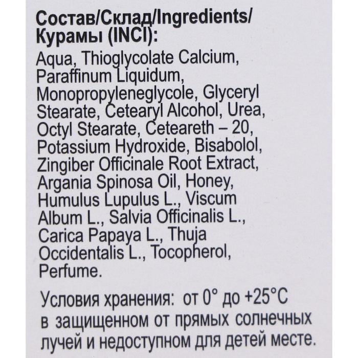Состав: Aqua, Calcium Carbonate, Thiourea, Potassium Hydroxide, Sodium Silicate, PEG-7 Glyceryl Cocoate, Ceteareth-20, Ceteareth-12, Cetearyl Alcohol, Cetyl Palmitate, Paraffinum Liquidum, Butyrospermum Parkii Butter, Cocos Nucifera Oil, Simmondsia Chinensis Seed Oil, Punica Granatum Fruit Extract, Aloe Barbadensis Leaf Juice, Fragrance.