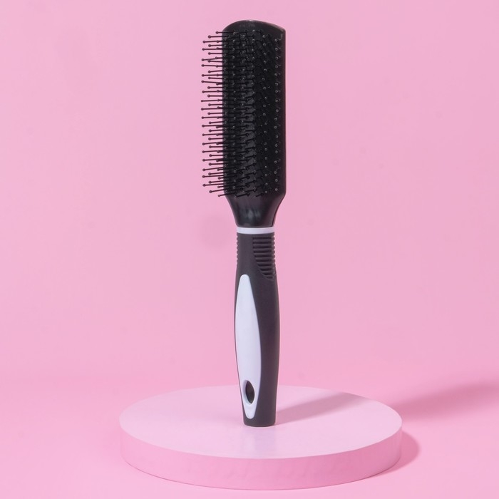 Расчёска массажная, 3,8 × 23,2 см, цвет чёрный/белый