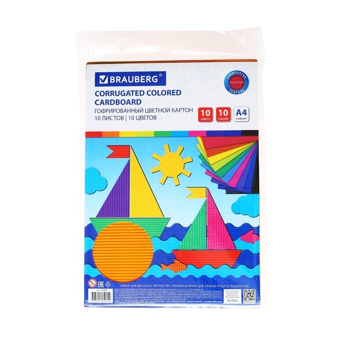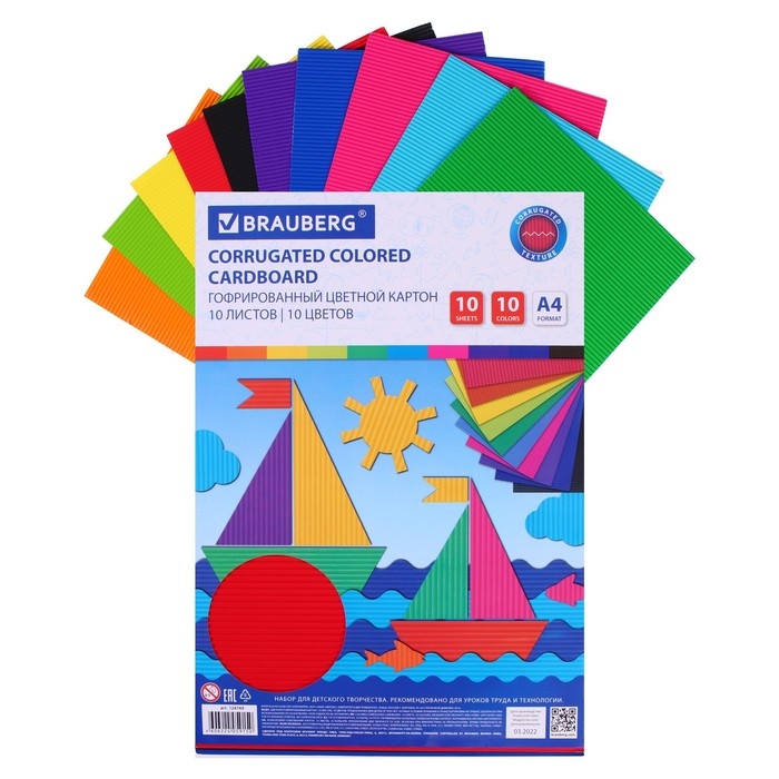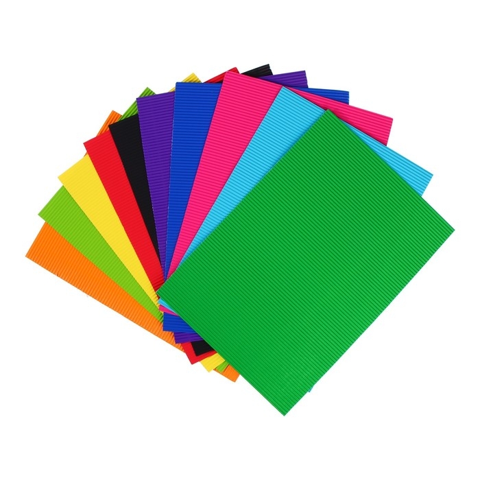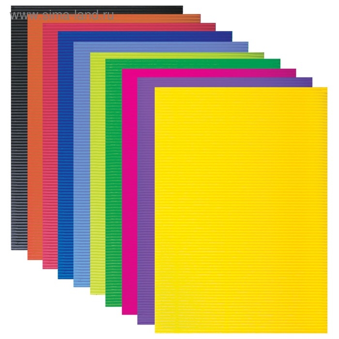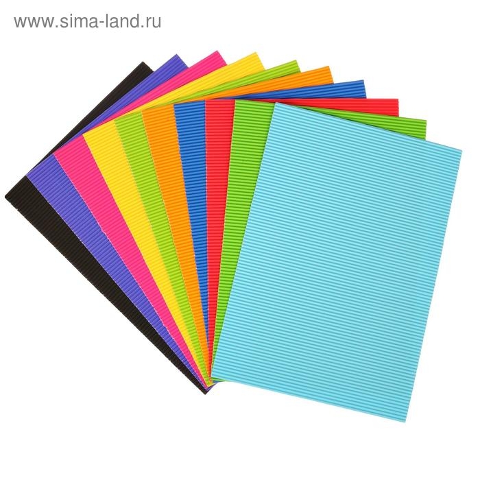 Картон цветной гофрированный А4, 10 листов, 10 цветов, 210 х 297 мм