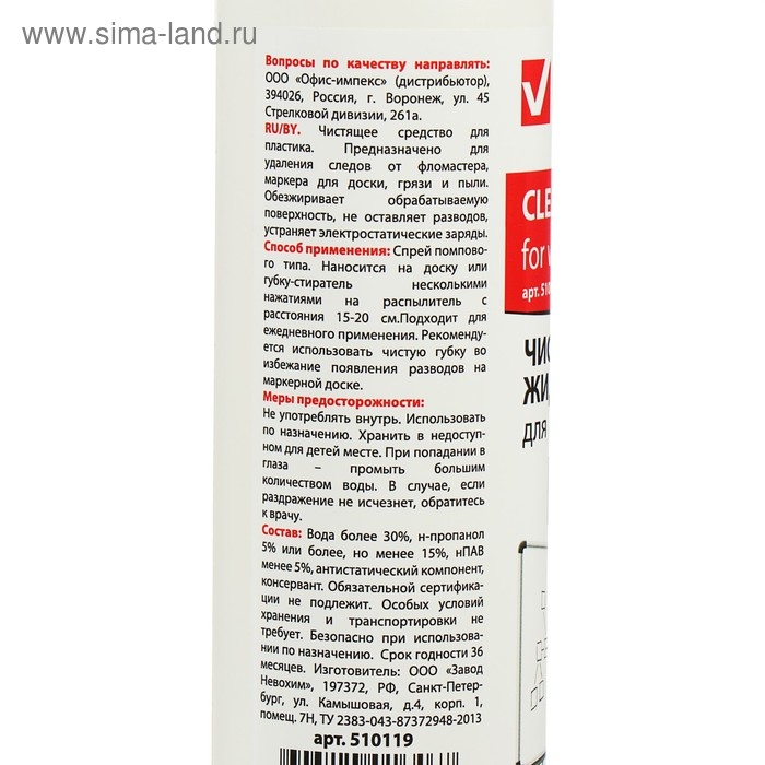 Чистящая жидкость-спрей для маркерных досок, 250 мл