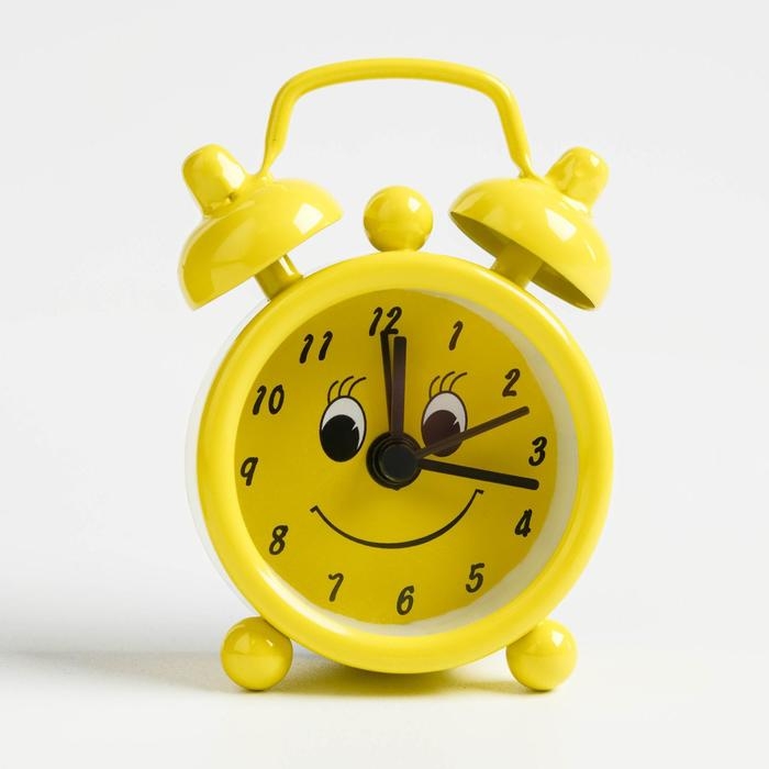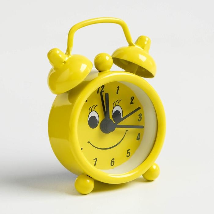 Будильник "Смайлик", дискретный ход, d-4 см, 6 х 4.5 см