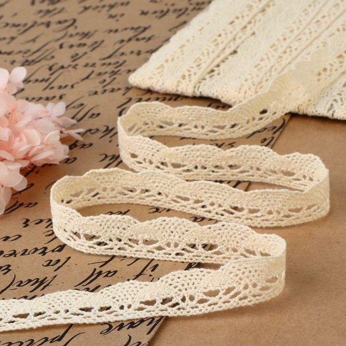 Кружево вязаное, 20 мм × 15 ± 1 м, цвет бежевый
